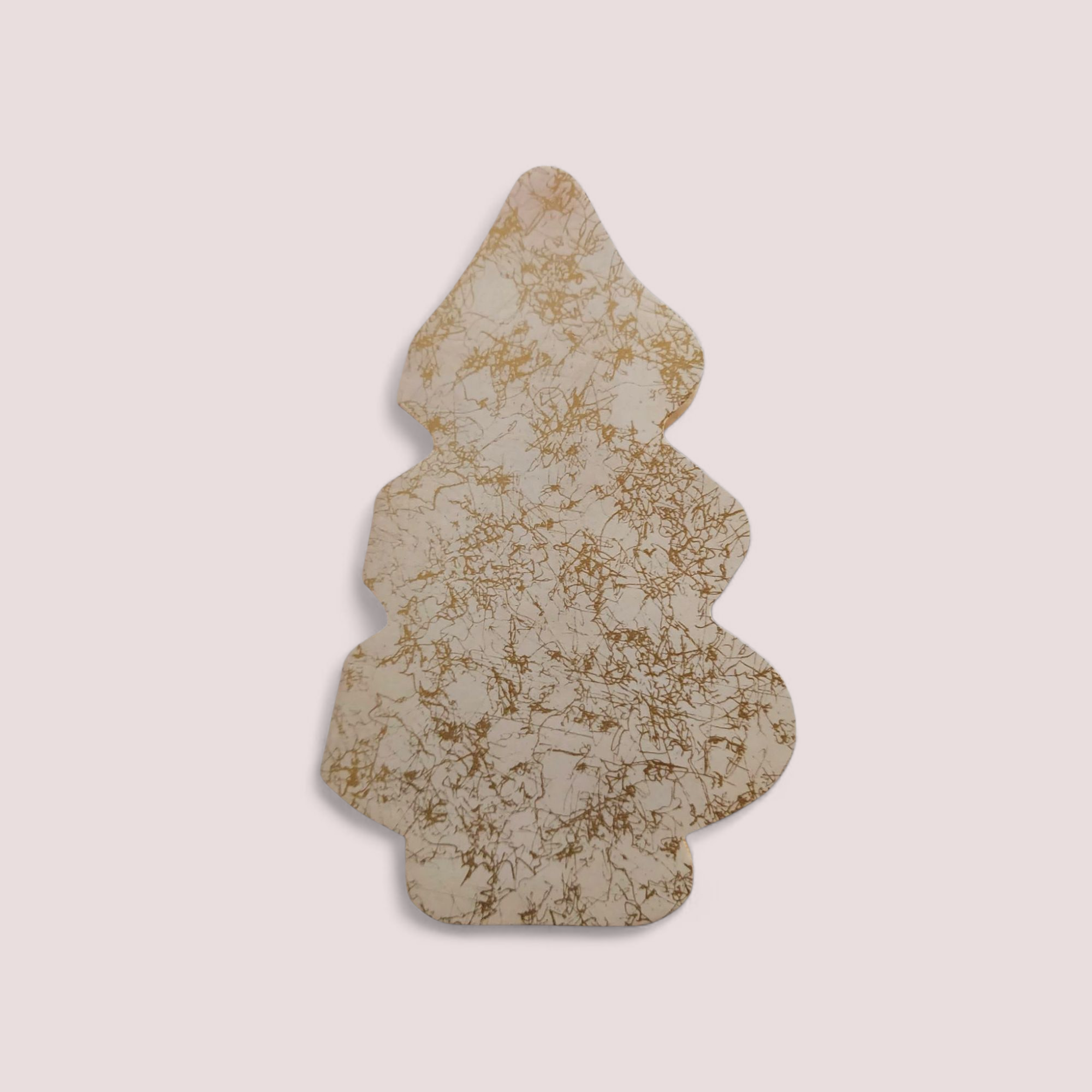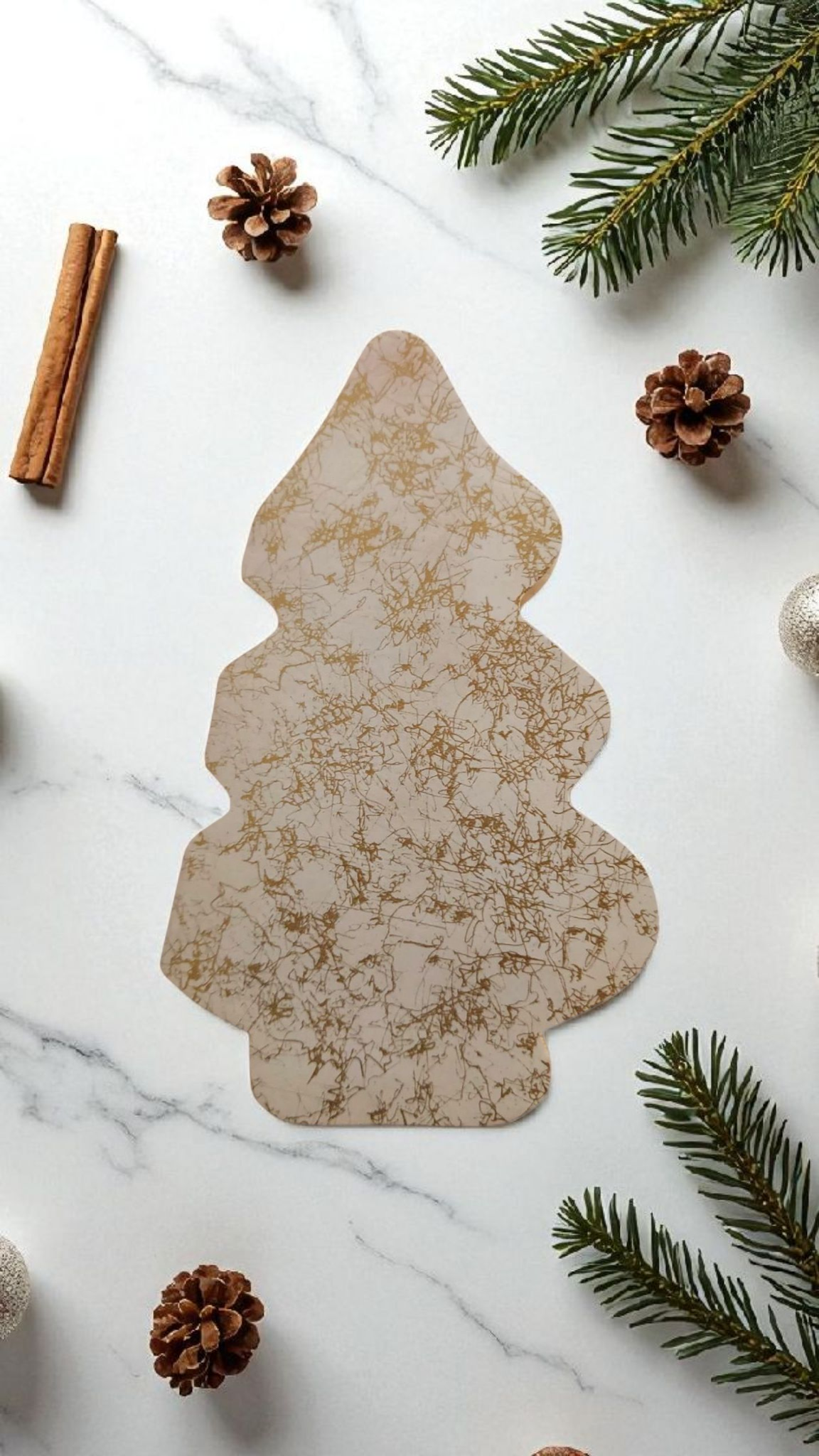 DIY Weihnachtskarte in Tannenbaum-Form (17 x 10 cm) aus festem Papier mit edlem Goldmuster. Ideal für Grußkarten, Bastelprojekte und weihnachtliche Deko.