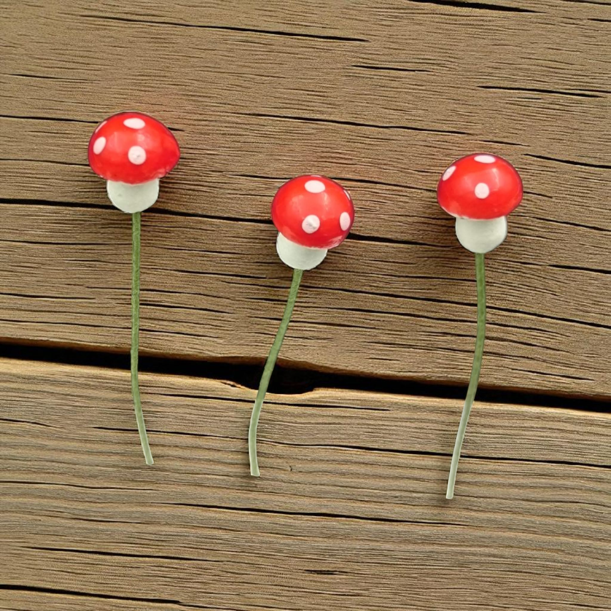 Künstliche Fliegenpilze aus Watte in leuchtendem Rot mit weißen Punkten – Set mit 20 Stück in verschiedenen Größen (8-35 mm Durchmesser), wählbar mit oder ohne Drahtstiel. Perfekt für Bastelprojekte, Deko, Geschenkverpackungen, Tischschmuck & saisonale Gestaltung.