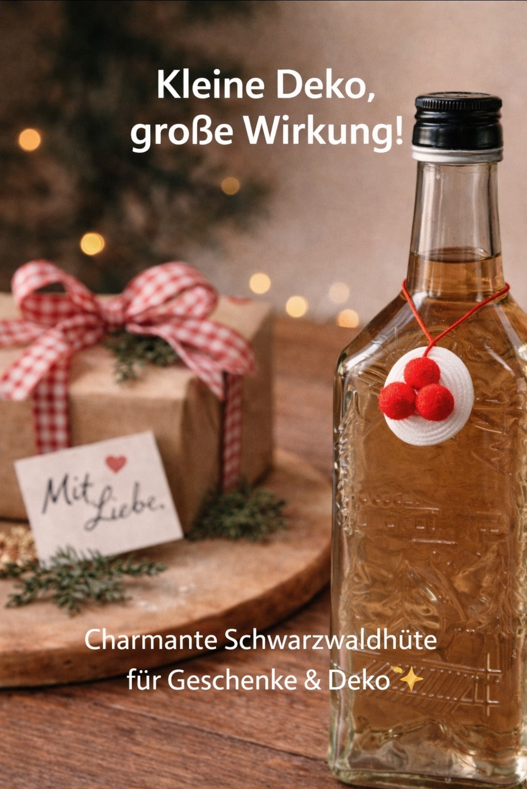 Egal ob für Bastelideen, Geschenke oder Festdekoration – diese Mini Schwarzwaldhüte setzen kleine Highlights mit traditionellem Schwarzwald-Flair.