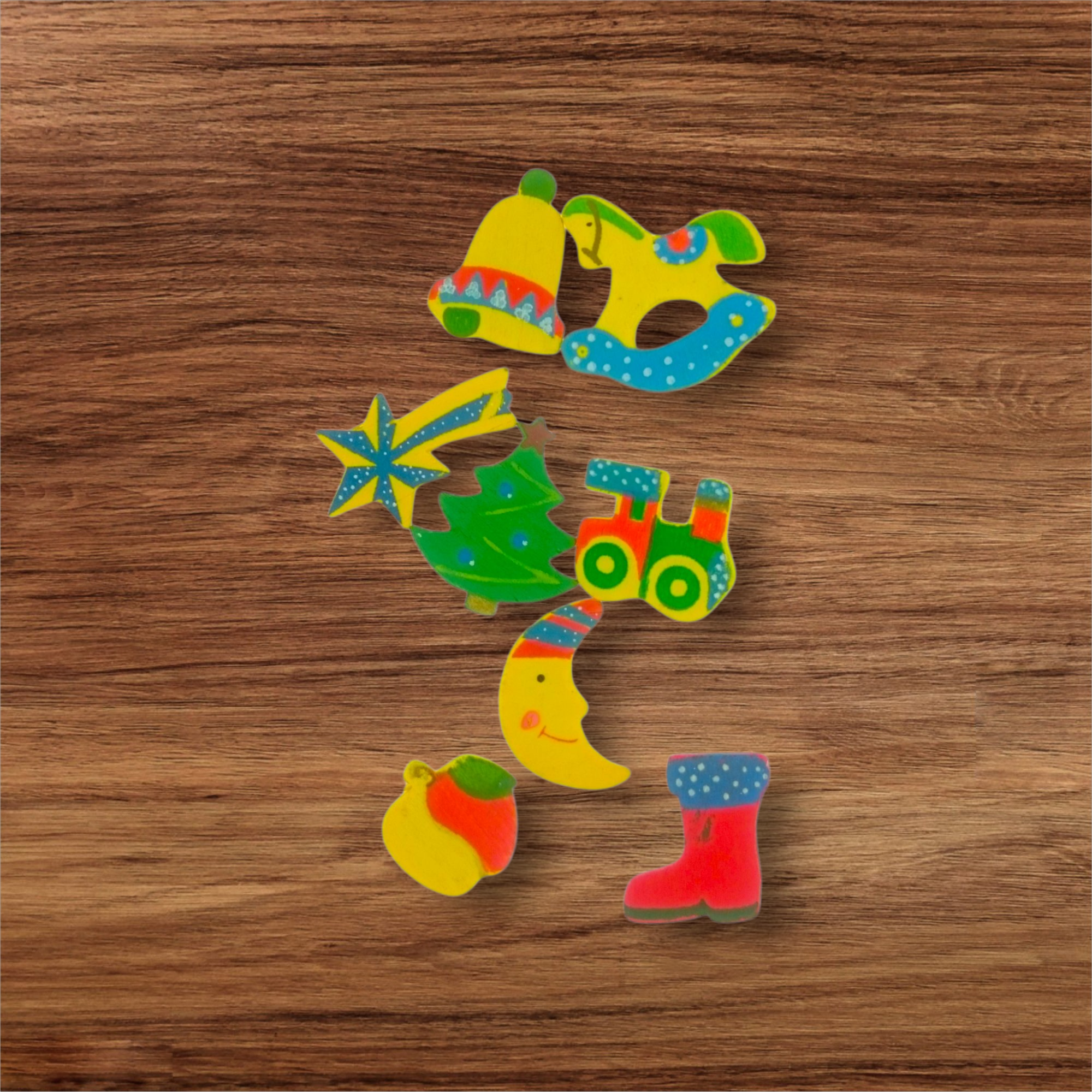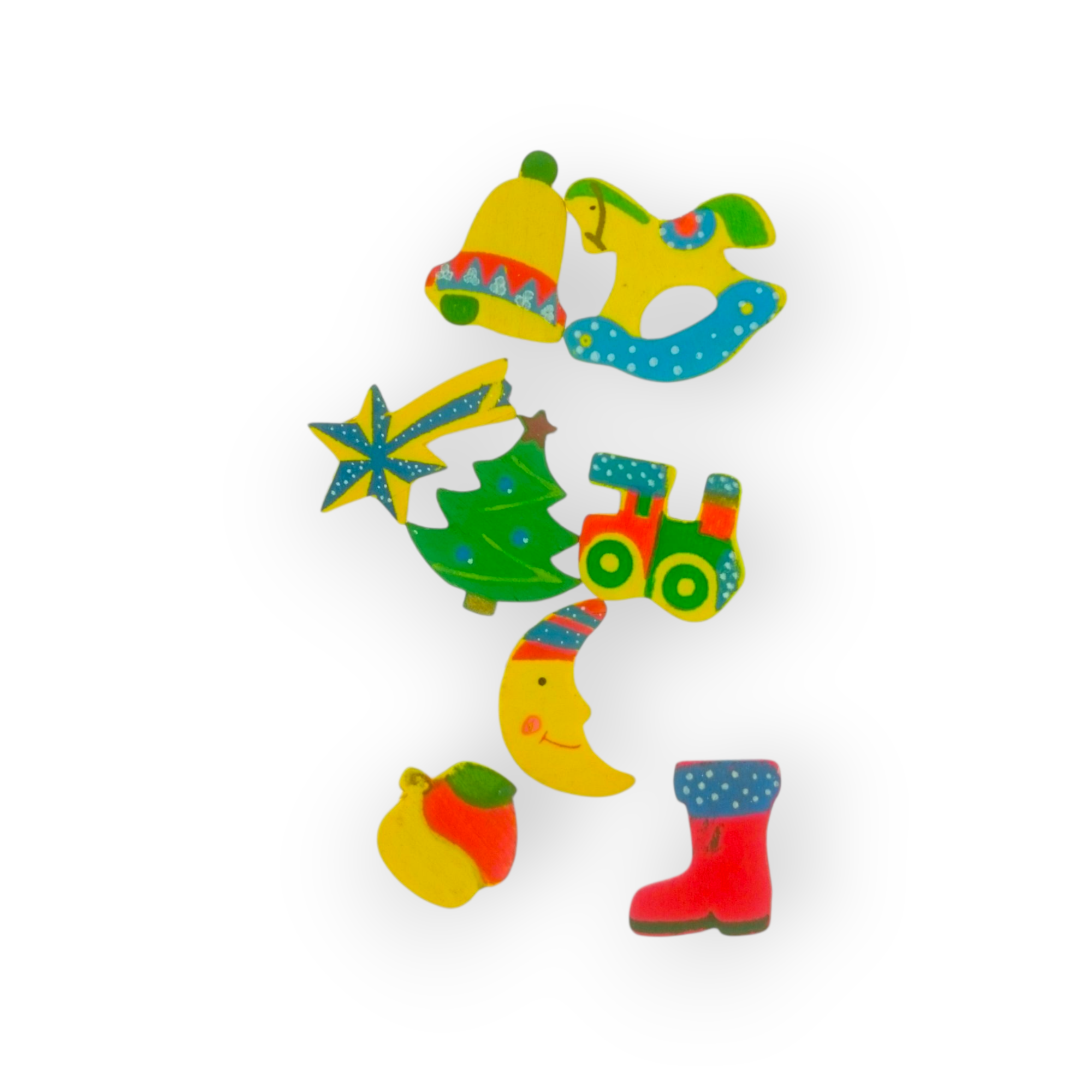 • Motive: Glocke, Schaukelpferd, Stiefel, Tannenbaum, Sternschnuppe, Mond, Apfel, Lokomotive (gemischte Auswahl)